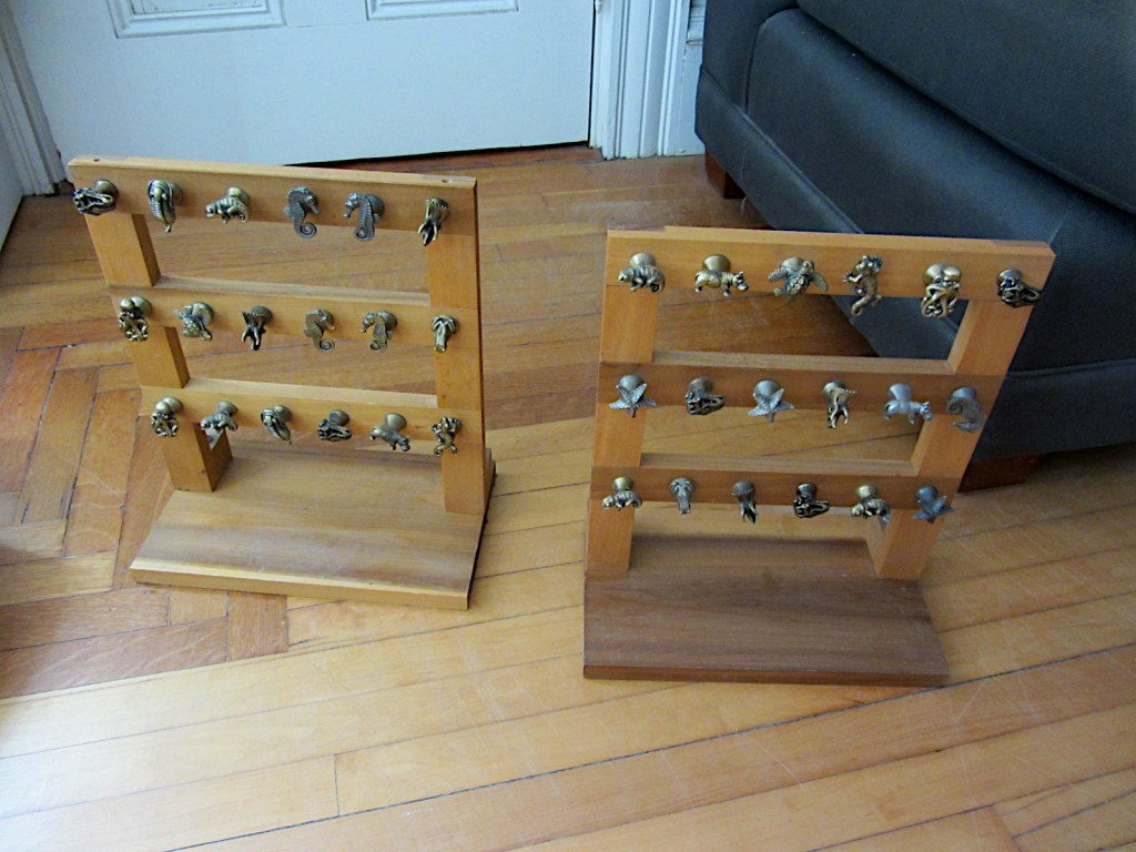 The wooden display is made to demonstrate my 2-part Magnetic Planet Earth Keychain.